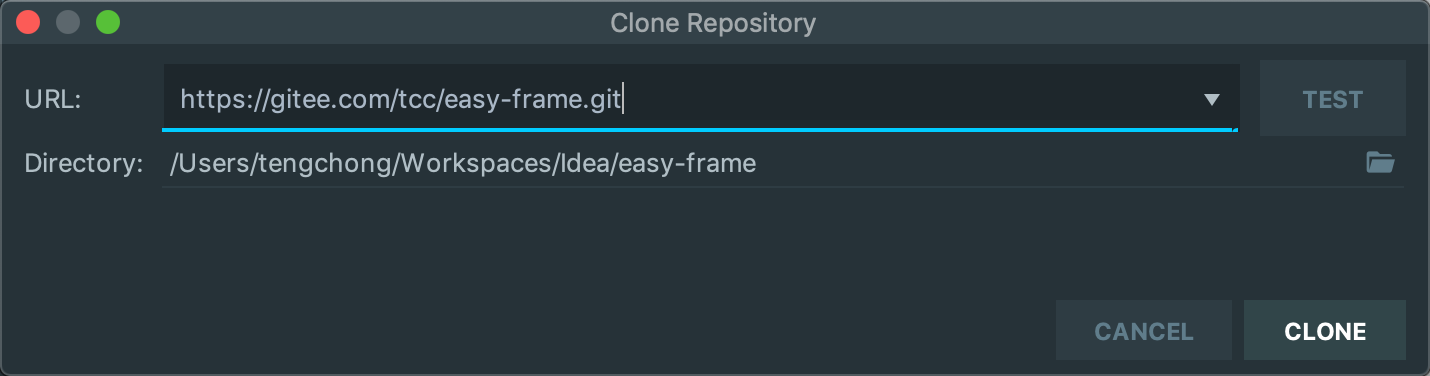 https://gitee.com/tcc/easy-frame.git - 点击clone